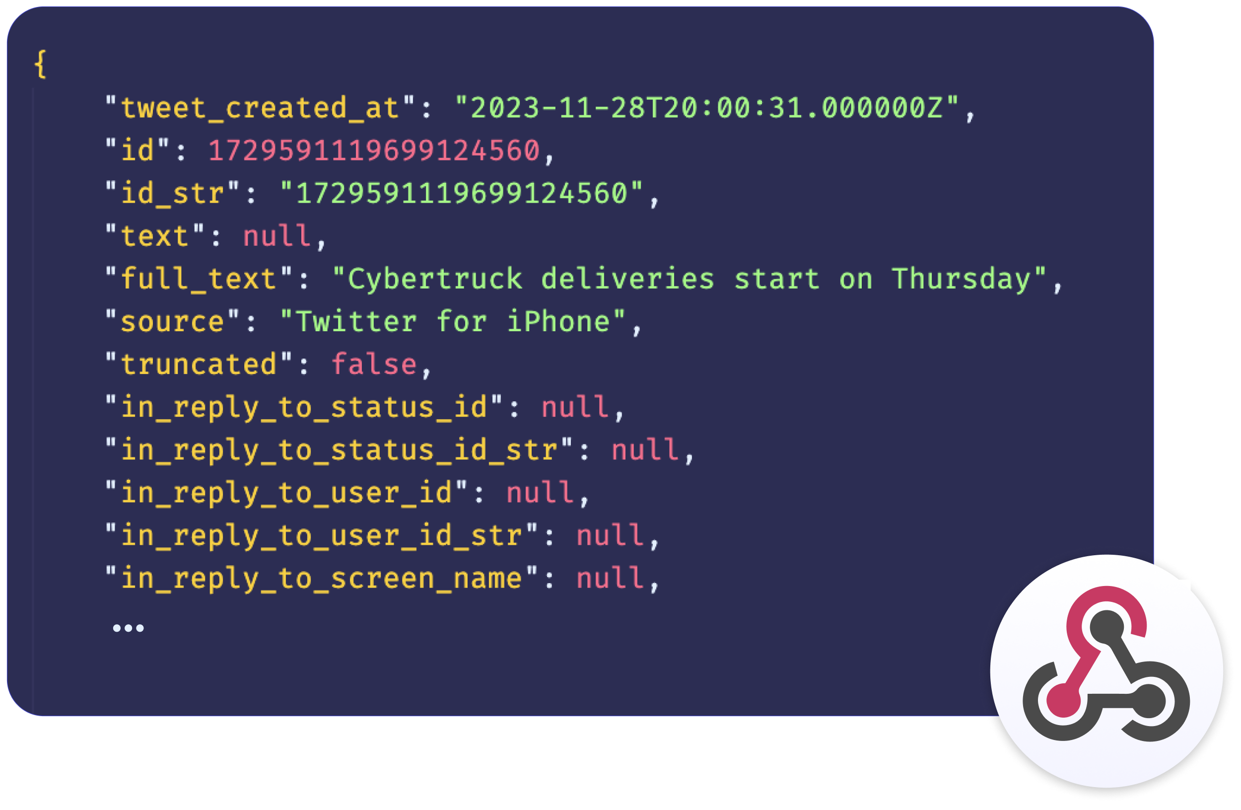 Receive the entire tweet and user's data for full flexibility